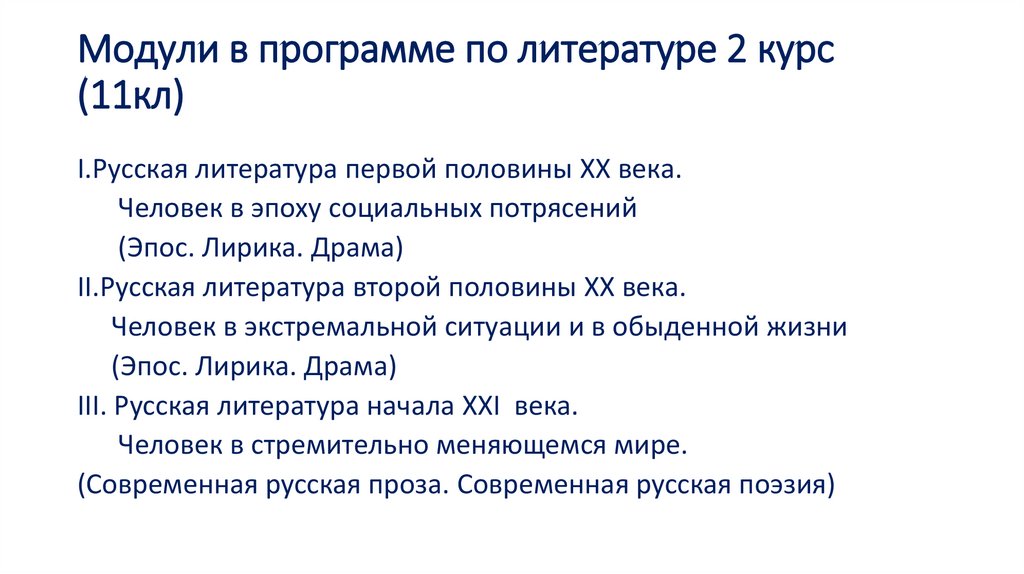 Модули в программе по литературе 2 курс(11кл)