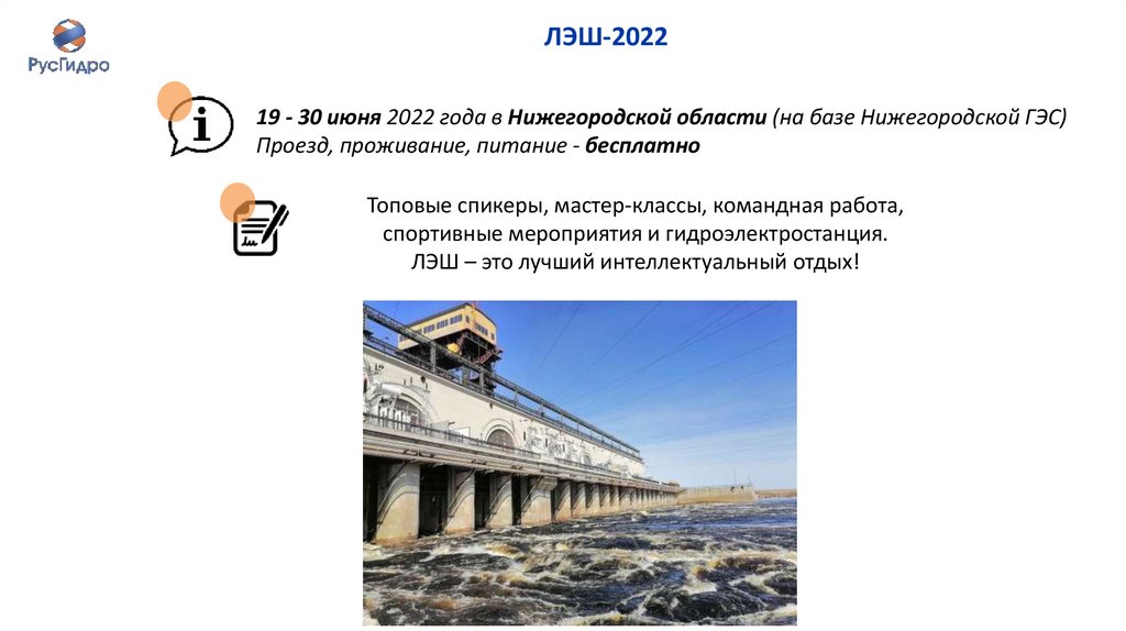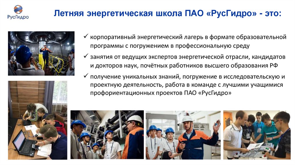 Летняя энергетическая школа ПАО «РусГидро» - это:корпоративный энергетический лагерь в формате образовательной
