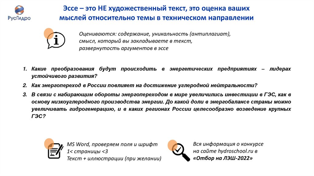 ответить на вопрос: «Почему я хочу поехать в Летнюю энергетическую школу ПАО «РусГидро».