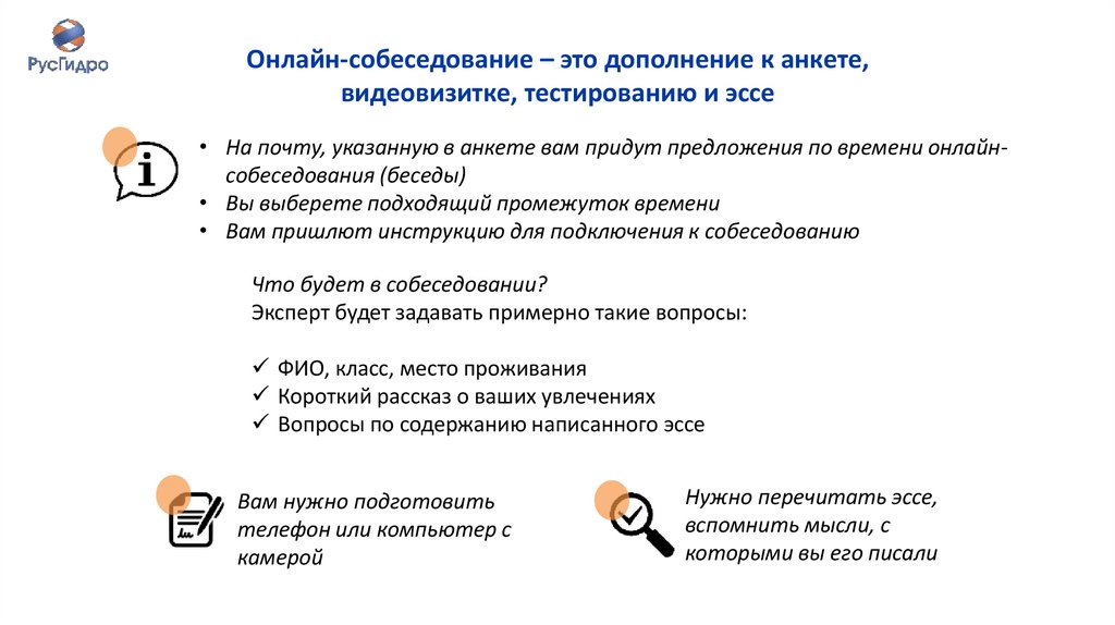 • На почту, указанную в анкете вам придут предложения по времени онлайнсобеседования (беседы)