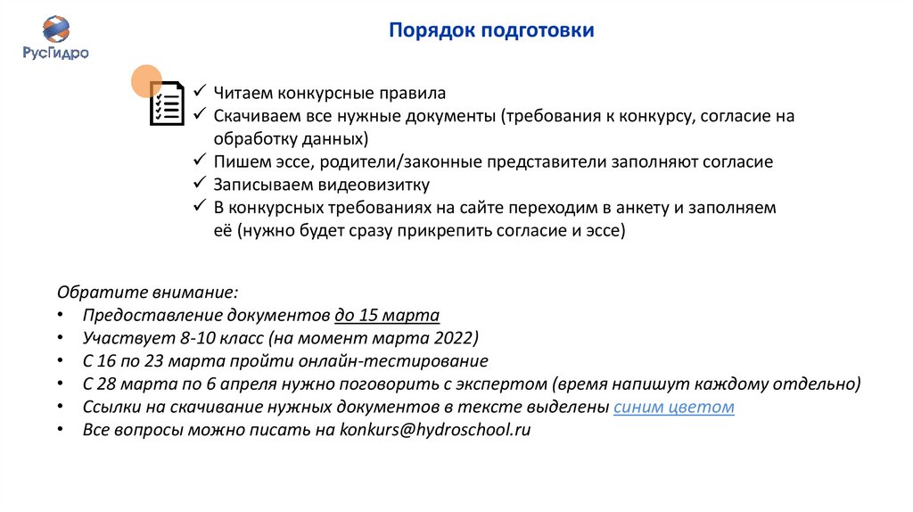 • Все вопросы можно писать на konkurs@hydroschool.ru
