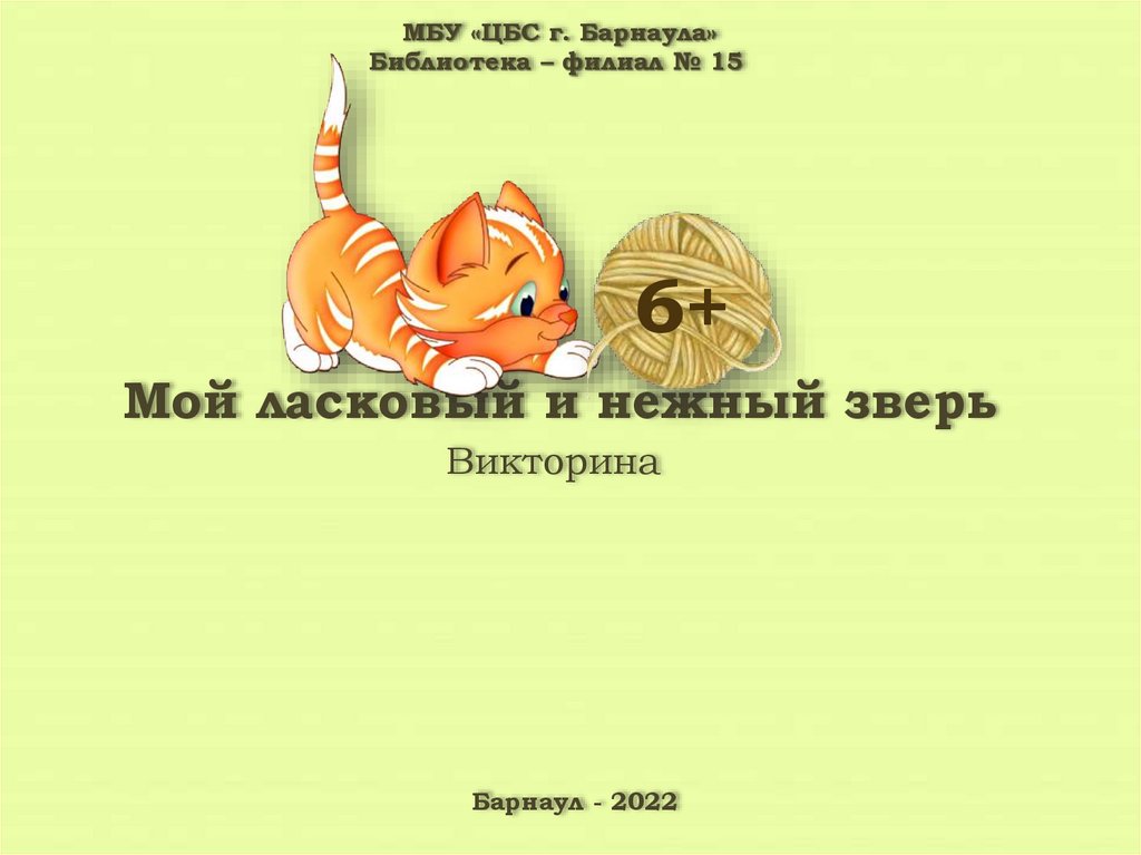 МБУ «ЦБС г. Барнаула»Библиотека – филиал № 15