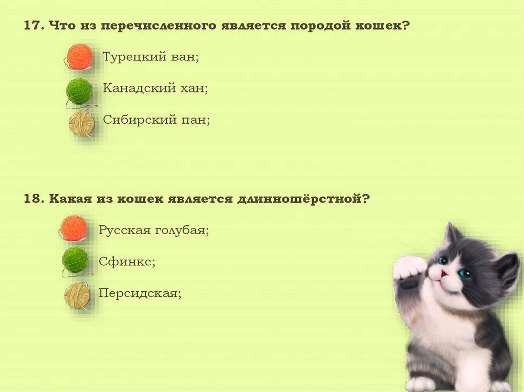 17. Что из перечисленного является породой кошек?Турецкий ван;