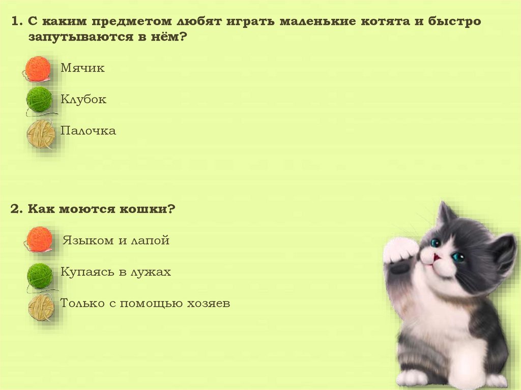 1. С каким предметом любят играть маленькие котята и быстрозапутываются в нём?