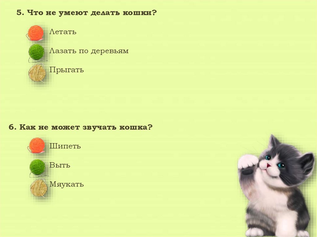 5. Что не умеют делать кошки?Летать