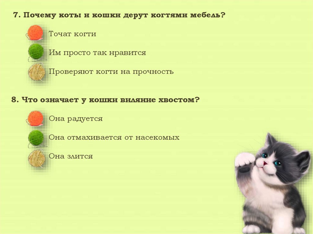 7. Почему коты и кошки дерут когтями мебель?Точат когти