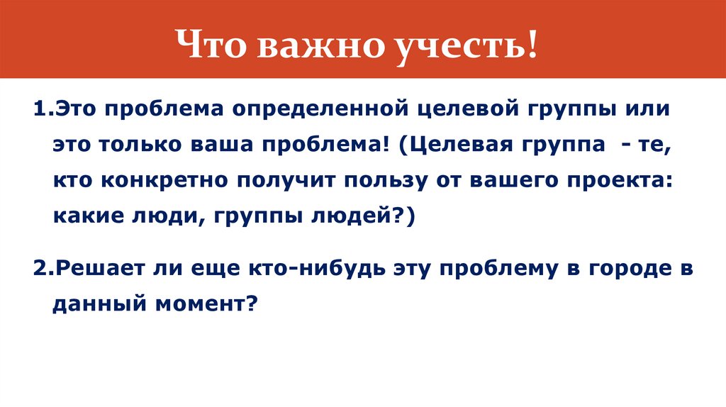 Что важно учесть!1.Это проблема определенной целевой группы или
