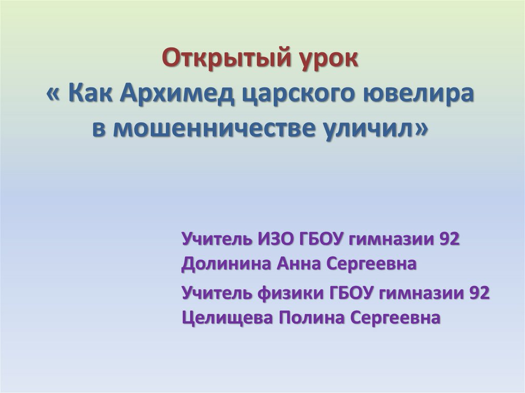 Открытый урок« Как Архимед царского ювелира