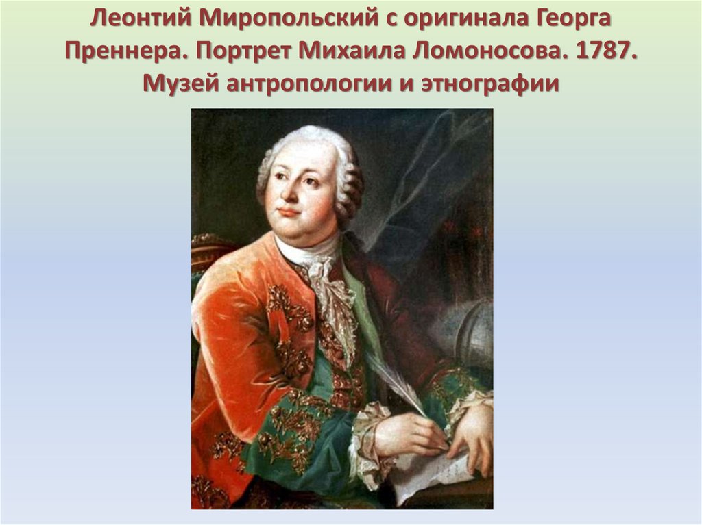 Леонтий Миропольский с оригинала ГеоргаПреннера. Портрет Михаила Ломоносова. 1787.