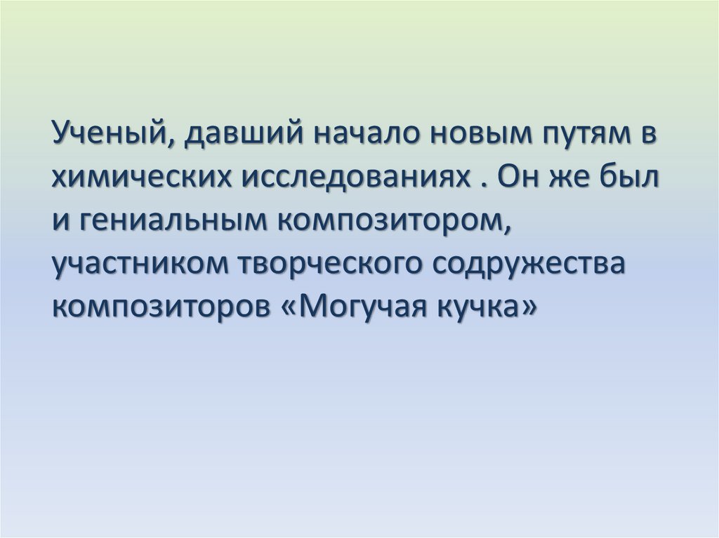 Ученый, давший начало новым путям вхимических исследованиях . Он же был