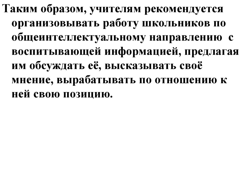 Таким образом, учителям рекомендуетсяорганизовывать работу школьников по