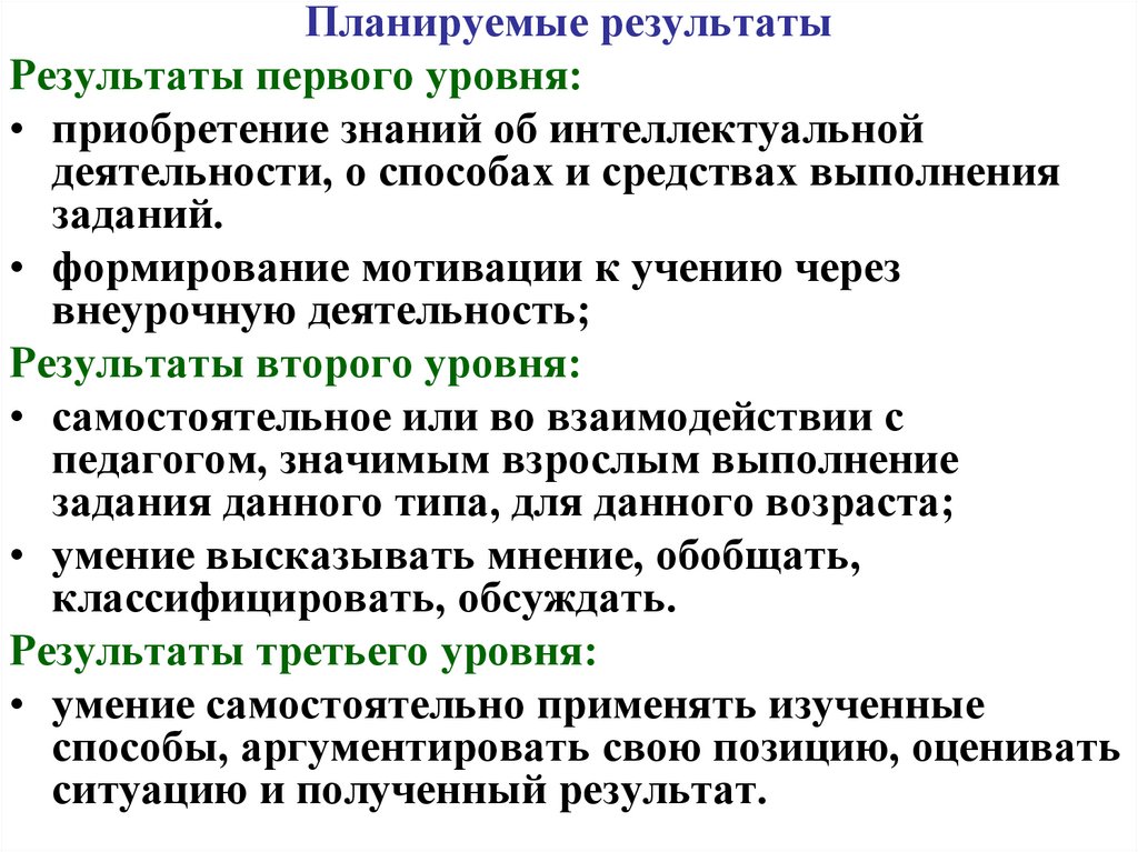 Планируемые результатыРезультаты первого уровня: