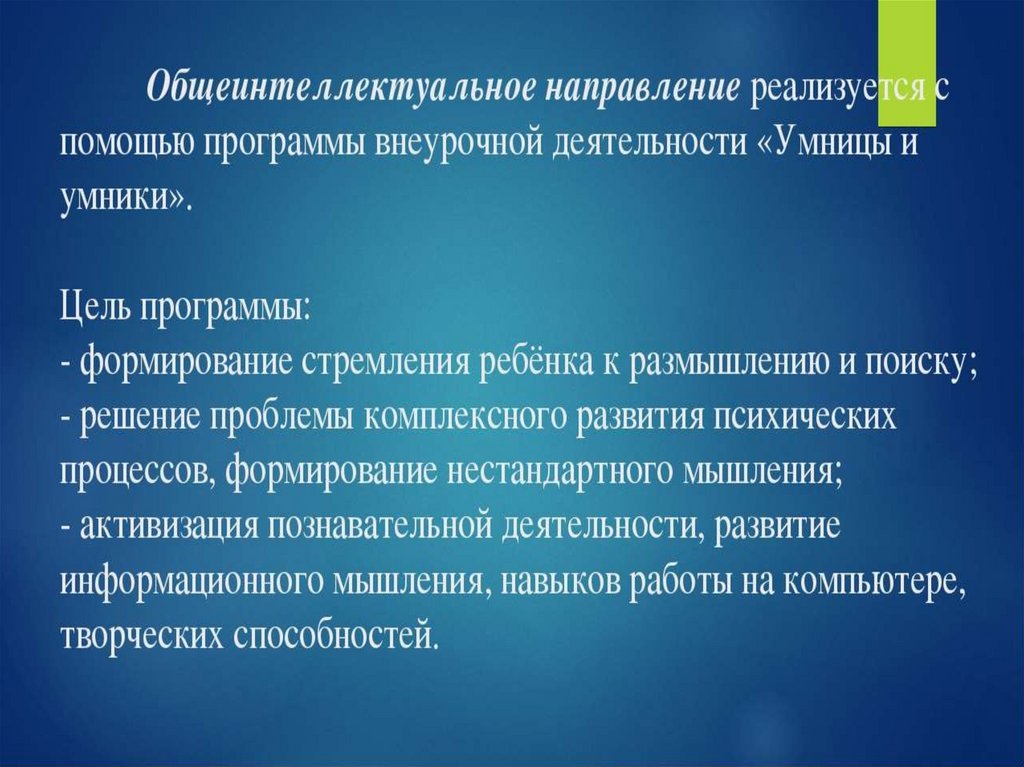 Цель общеинтеллектуальногонаправления