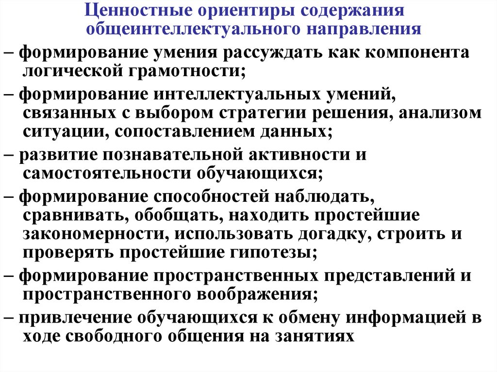 Ценностные ориентиры содержанияобщеинтеллектуального направления