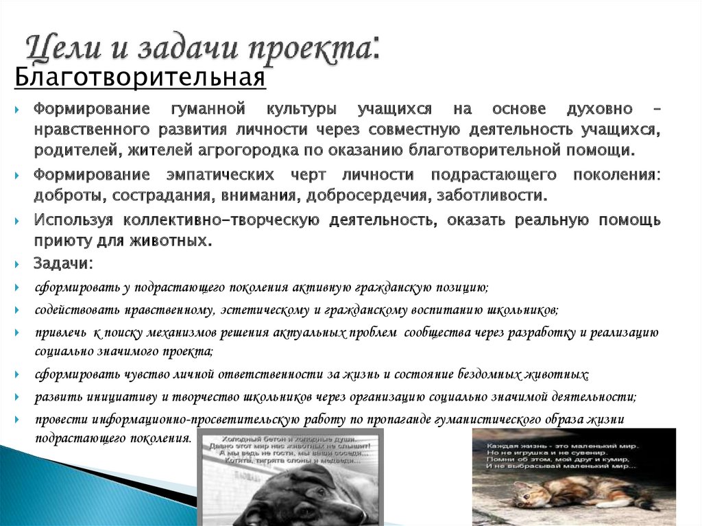 сформировать чувство личной ответственности за жизнь и состояние бездомных животных;