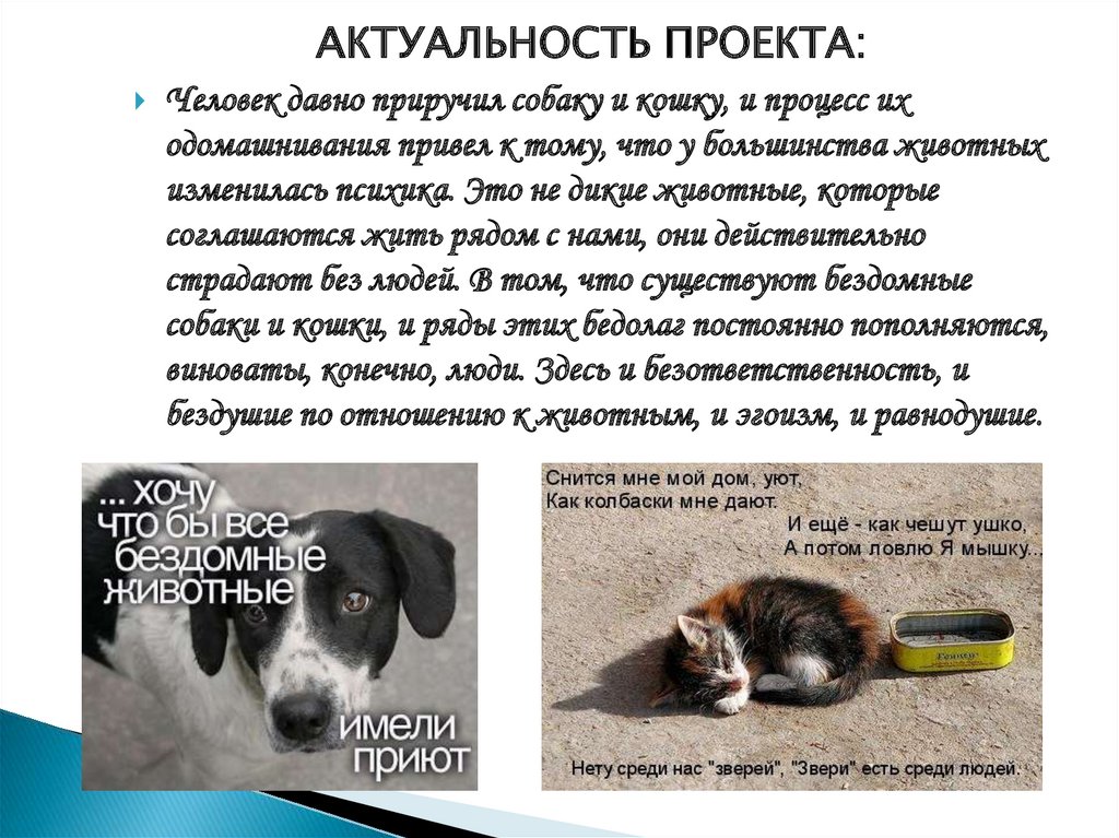 АКТУАЛЬНОСТЬ ПРОЕКТА:Человек давно приручил собаку и кошку, и процесс их