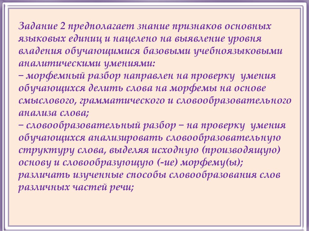 Задание 2 предполагает знание признаков основныхязыковых единиц и нацелено на выявление уровня
