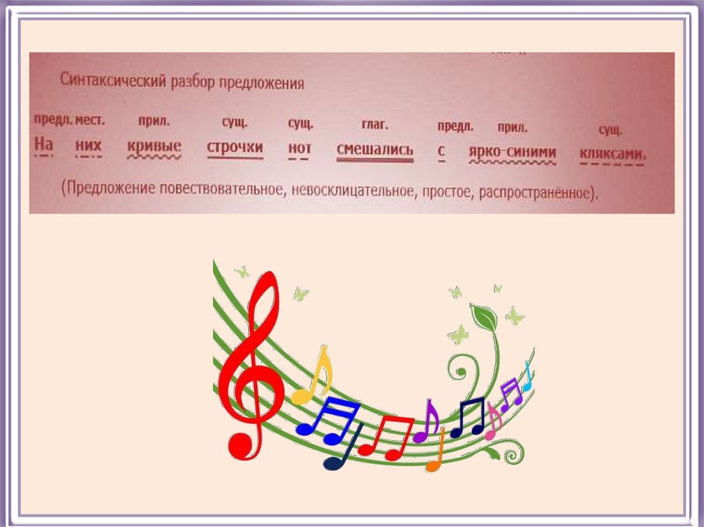 строч..ки(2) нот см..шались с (ярко)син..ми кляксами. (4)