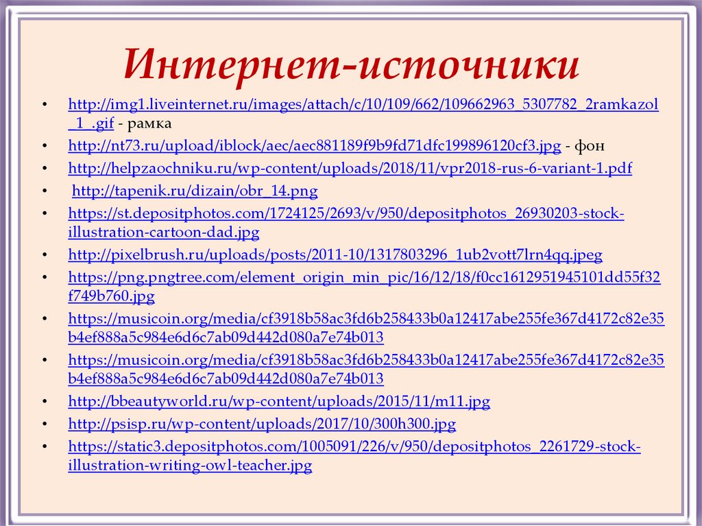 Интернет-источникиhttp://img1.liveinternet.ru/images/attach/c/10/109/662/109662963_5307782_2ramkazol