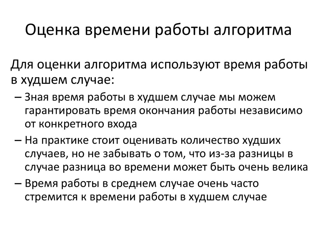 – Зная время работы в худшем случае мы можем