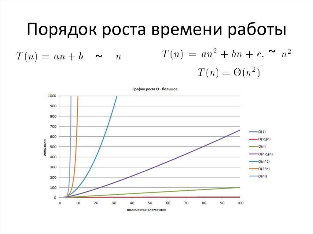 Порядок роста времени работы~