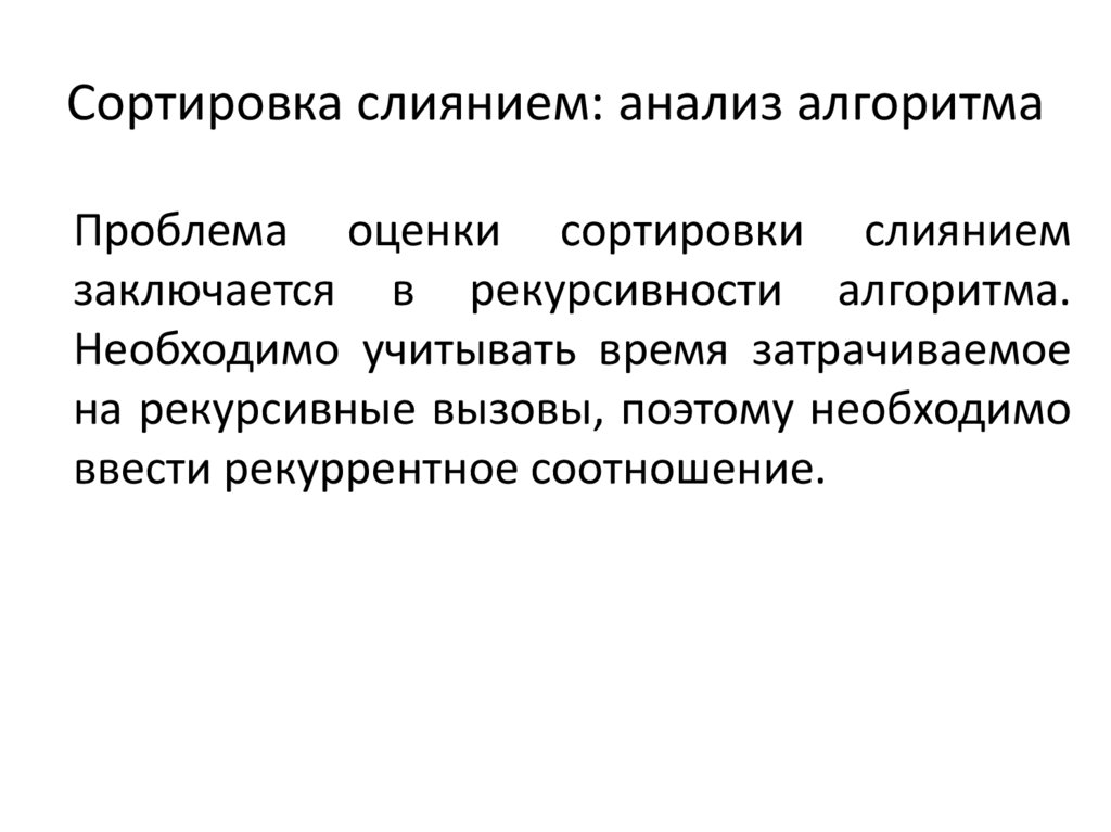 Сортировка слиянием: анализ алгоритмаПроблема оценки сортировки слиянием