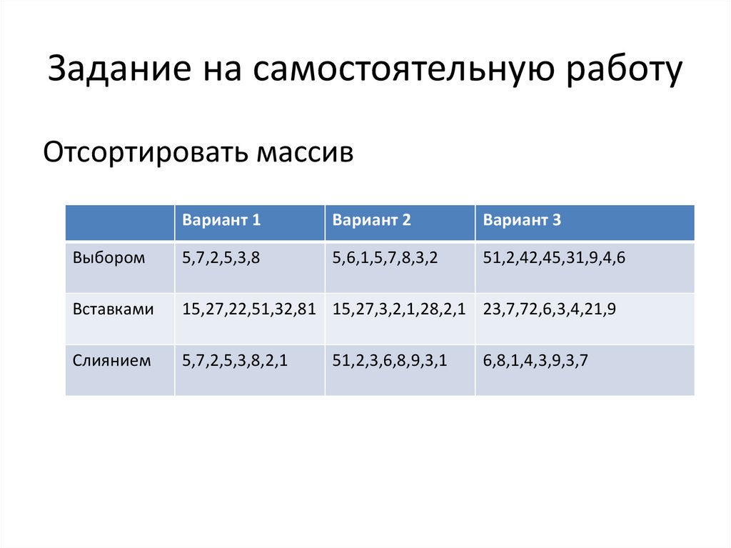 Задание на самостоятельную работуОтсортировать массив