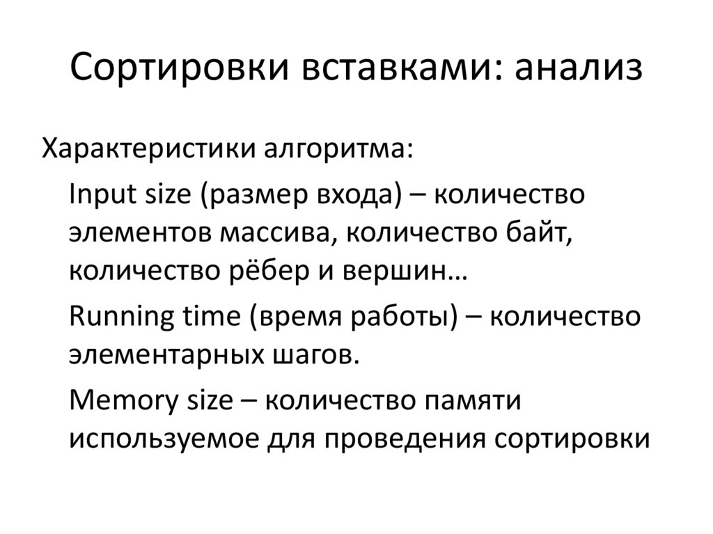 Сортировки вставками: анализХарактеристики алгоритма: