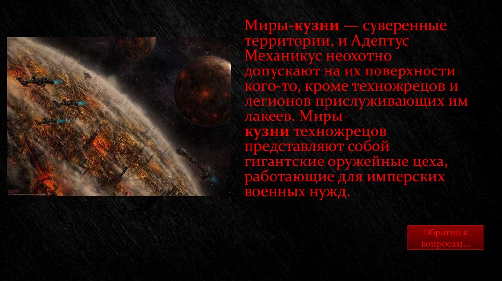 Миры-кузни — суверенныетерритории, и Адептус