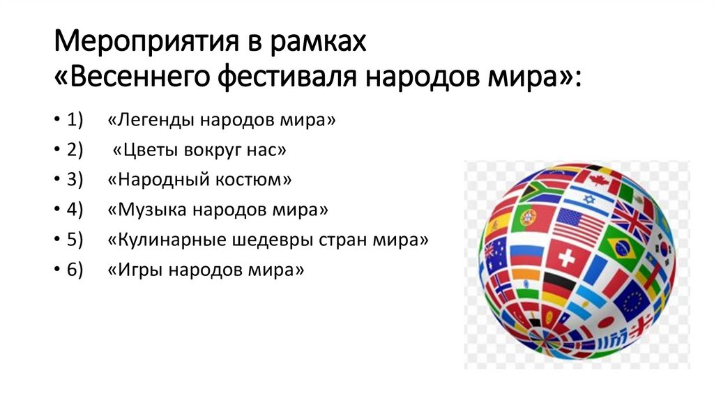 Мероприятия в рамках«Весеннего фестиваля народов мира»: