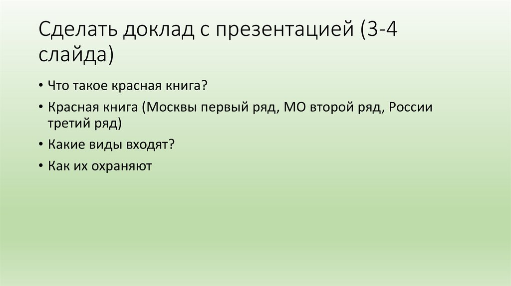 • Красная книга (Москвы первый ряд, МО второй ряд, России