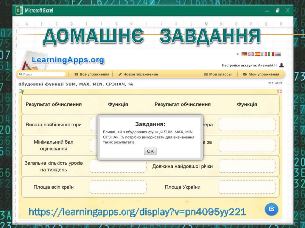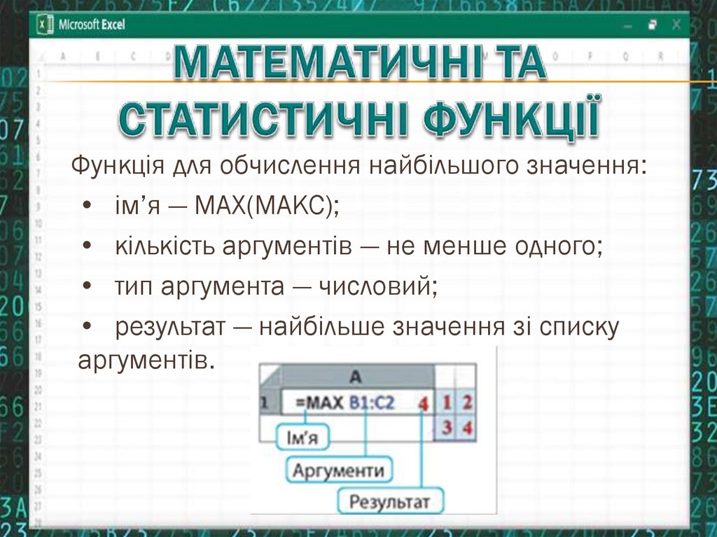 Функція для обчислення найбільшого значення:• ім’я — МАХ(МАКС);