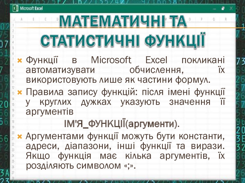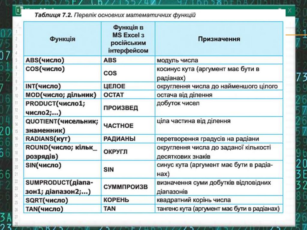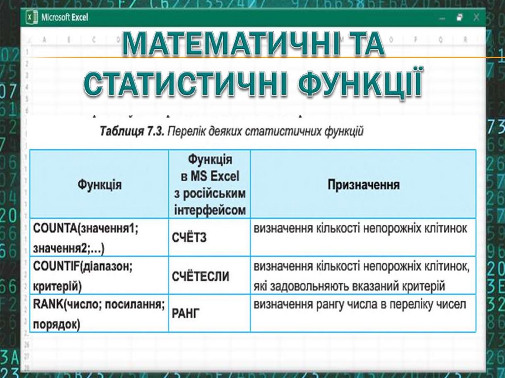 Призначення й використання математичних і статистичних функцій табличного процесора