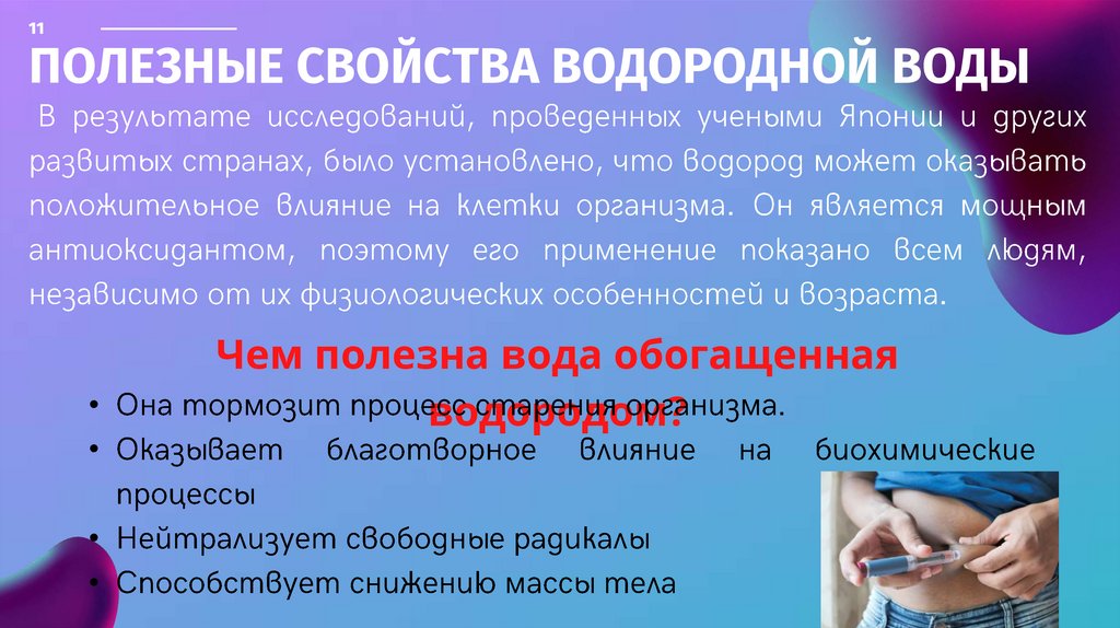 11ПОЛЕЗНЫЕ СВОЙСТВА ВОДОРОДНОЙ ВОДЫ