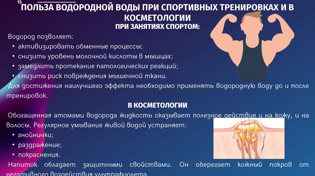 15ПОЛЬЗА ВОДОРОДНОЙ ВОДЫ ПРИ СПОРТИВНЫХ ТРЕНИРОВКАХ И В