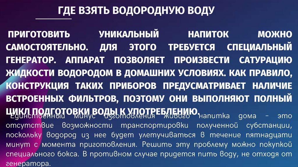 ГДЕ ВЗЯТЬ ВОДОРОДНУЮ ВОДУПРИГОТОВИТЬ
