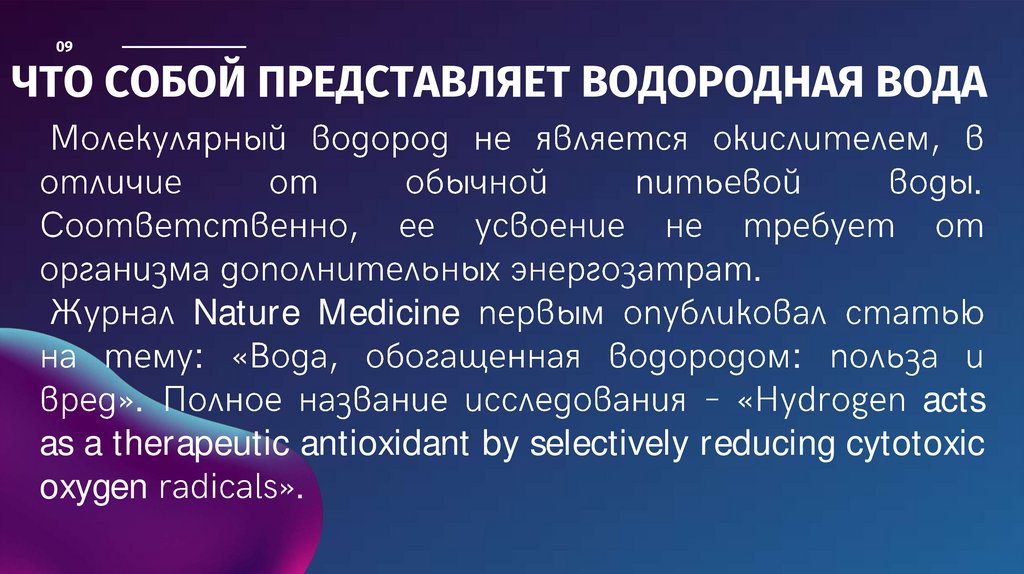 09ЧТО СОБОЙ ПРЕДСТАВЛЯЕТ ВОДОРОДНАЯ ВОДА