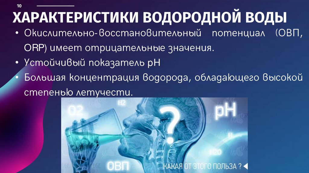 10ХАРАКТЕРИСТИКИ ВОДОРОДНОЙ ВОДЫ