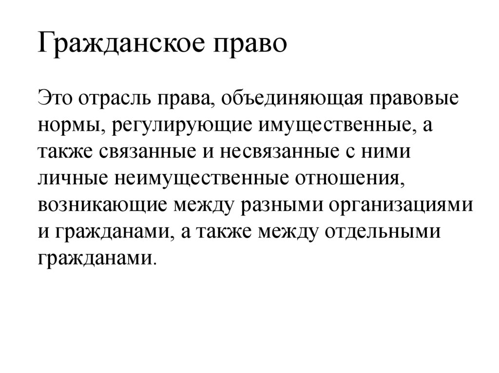 Гражданское правоЭто отрасль права, объединяющая правовые