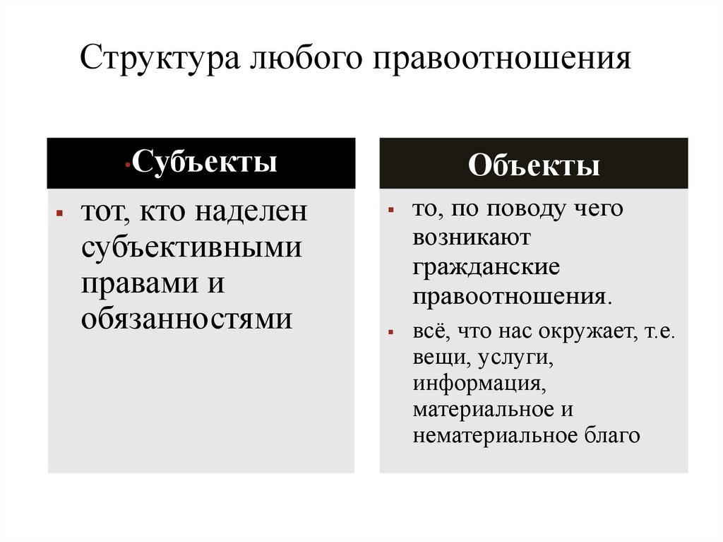 Структура любого правоотношенияСубъекты