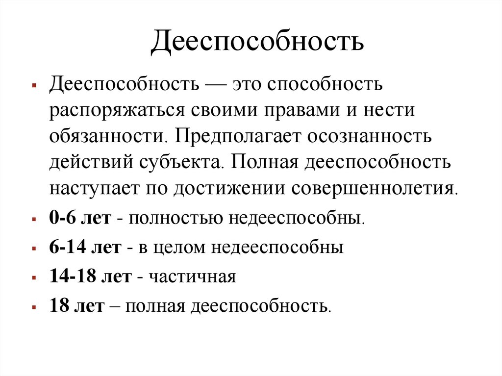 действий субъекта. Полная дееспособность