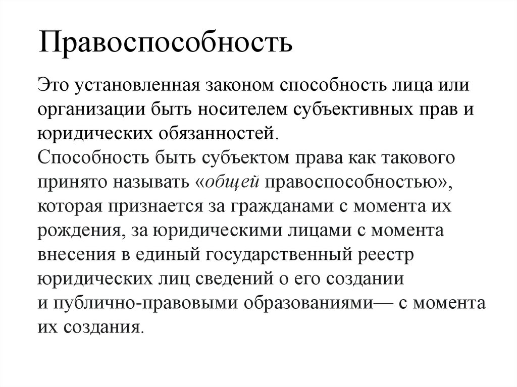 принято называть «общей правоспособностью»,