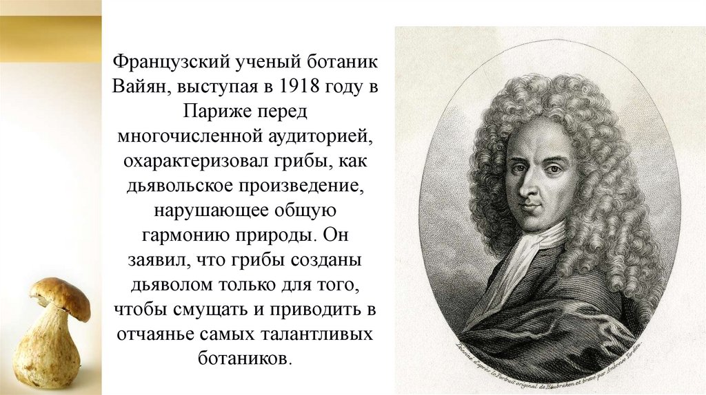 Французский ученый ботаникВайян, выступая в 1918 году в