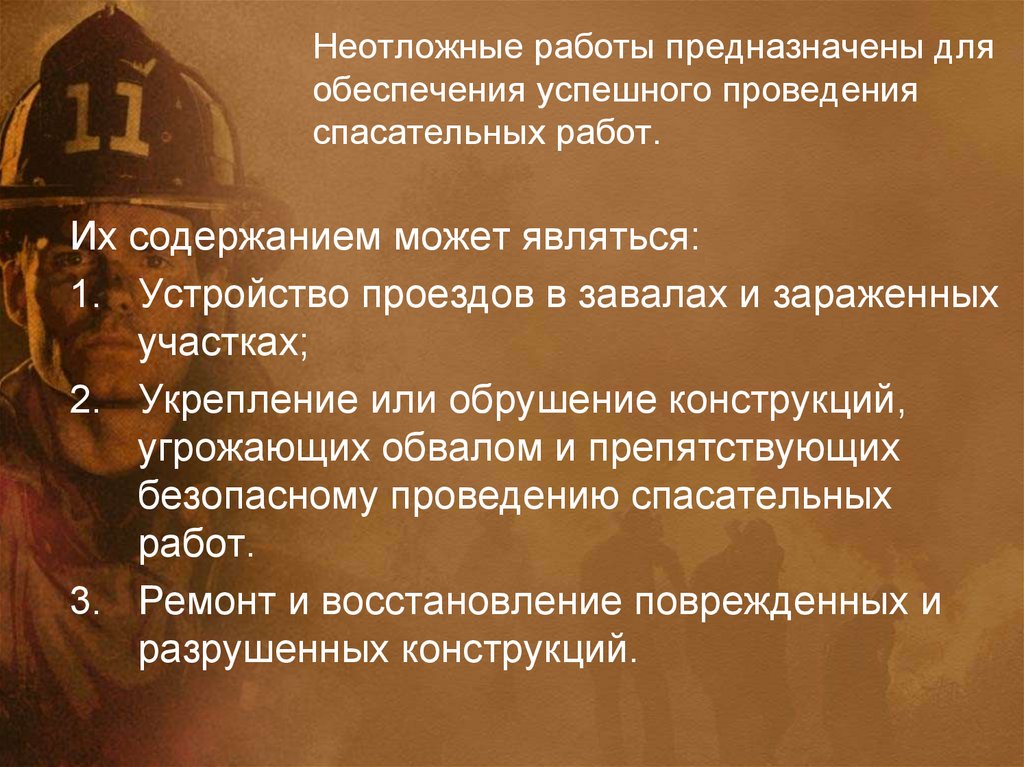 Неотложные работы предназначены дляобеспечения успешного проведения
