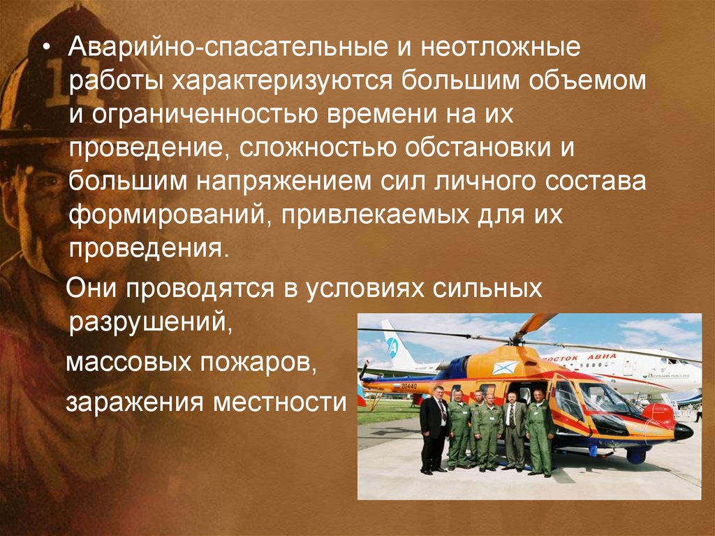 • Аварийно-спасательные и неотложныеработы характеризуются большим объемом