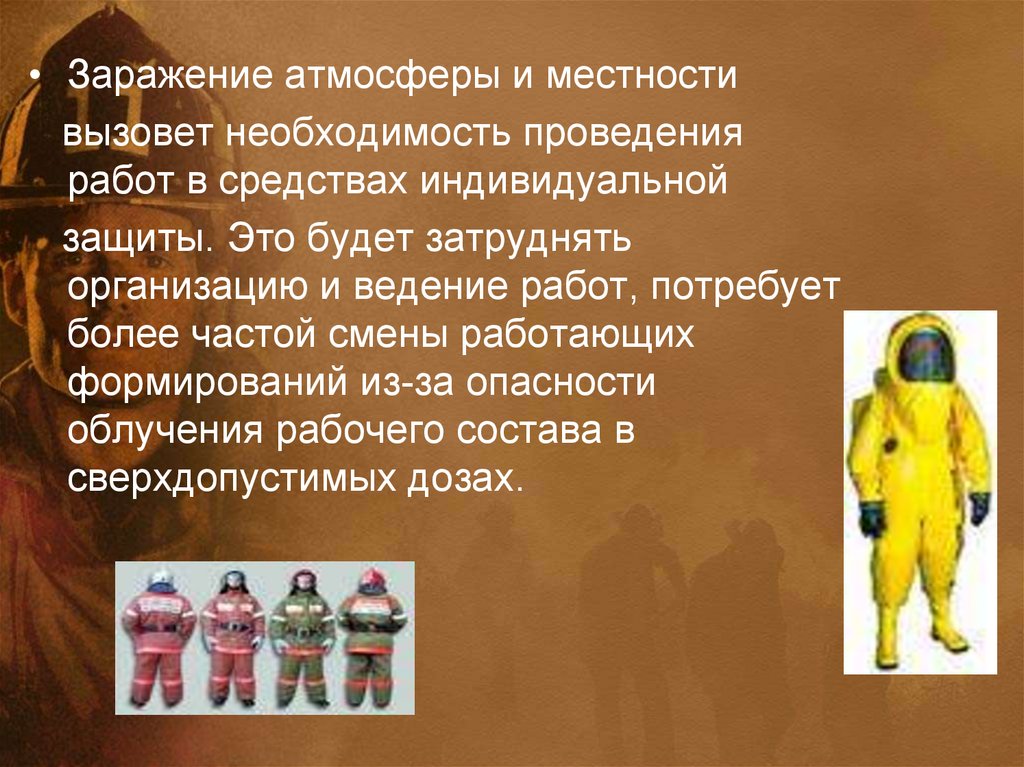 • Заражение атмосферы и местностивызовет необходимость проведения