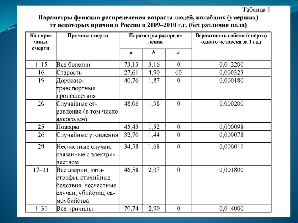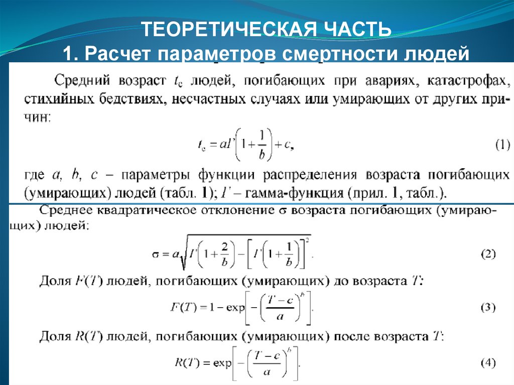 ТЕОРЕТИЧЕСКАЯ ЧАСТЬ1. Расчет параметров смертности людей