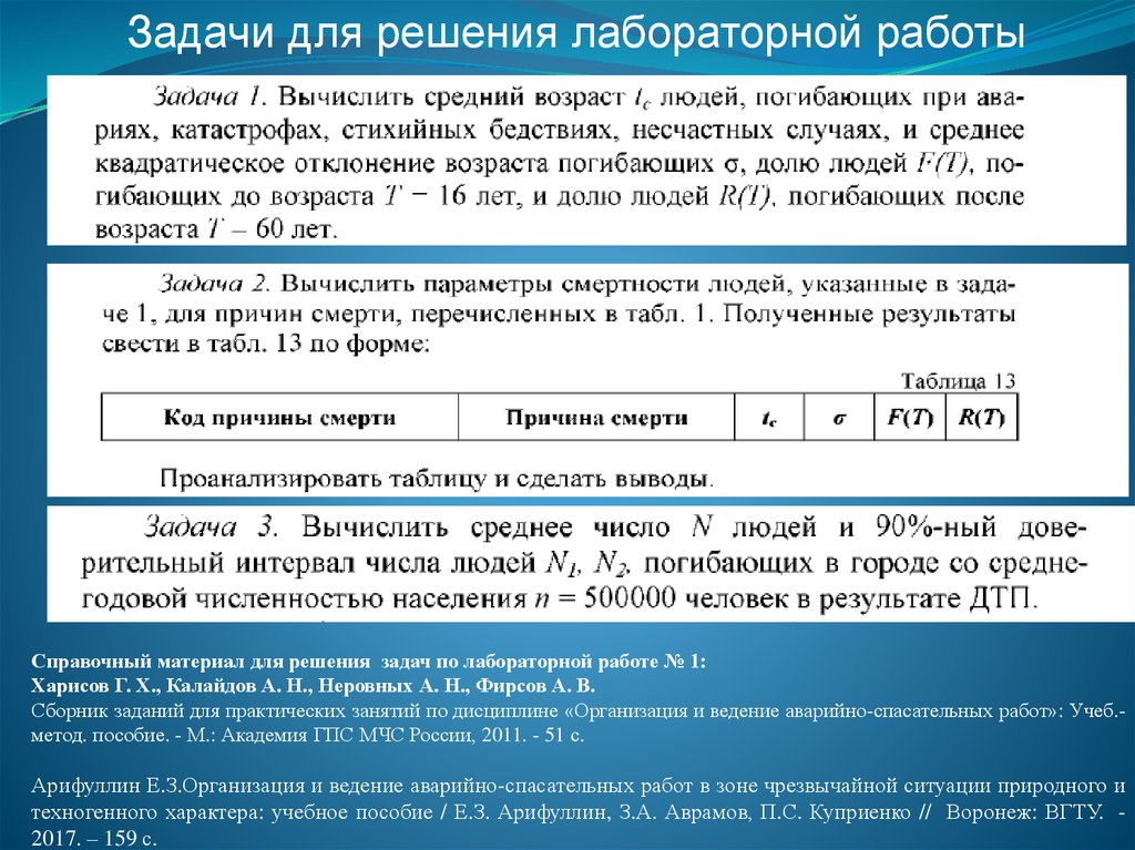 Тема «Рассчитать параметрысмертности людей при ЧС
