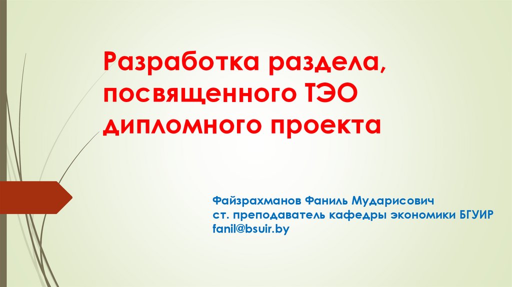 Разработка раздела, посвященного ТЭО дипломного проекта