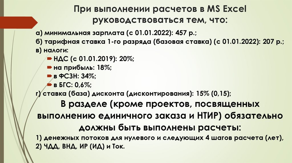 При выполнении расчетов в MS Excelруководствоваться тем, что: